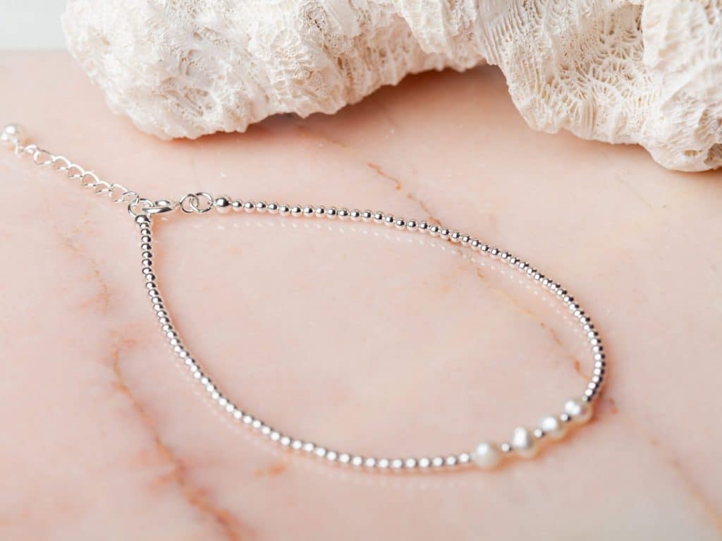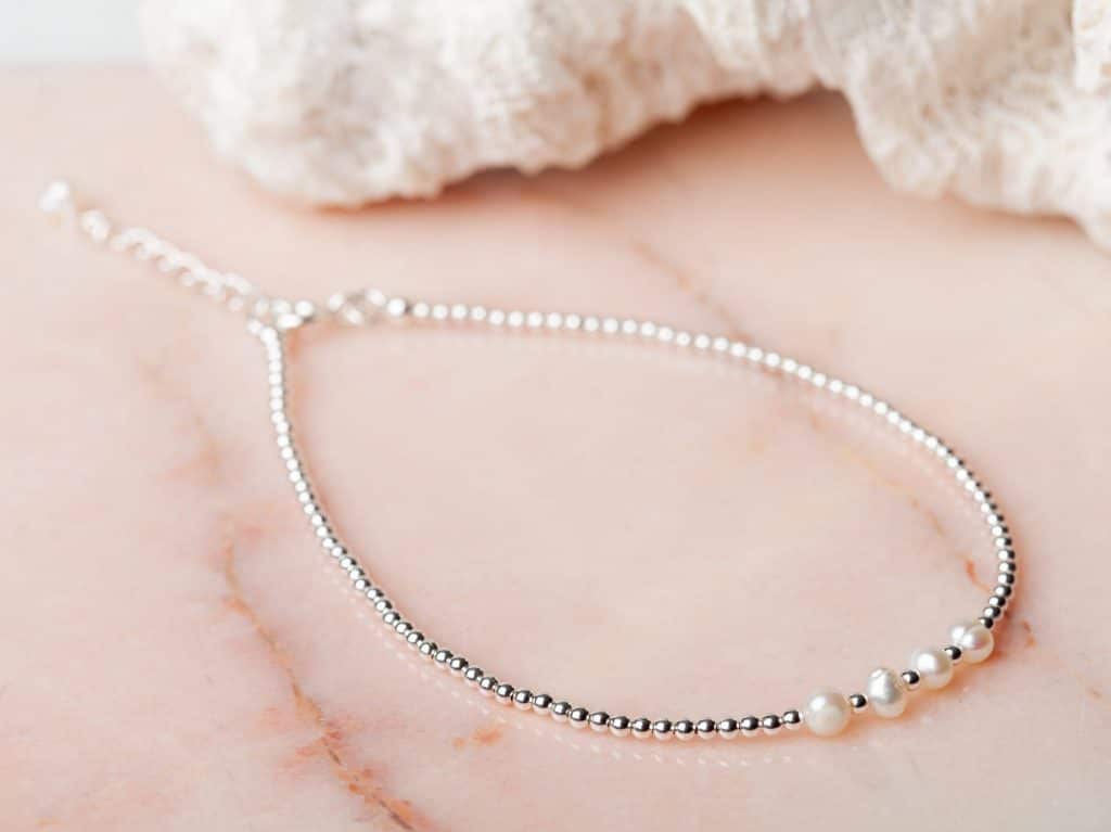 Bracelet Pearl Ellie is een elegant sieraad met vier echte zoetwaterparels. De armband is volledig gemaakt van 925 sterling zilver. Door het verfijnde design is deze armband perfect te combineren met andere zilveren armbandjes en oorbellen met zoetwaterparels. De armband is in lengte verstelbaar.