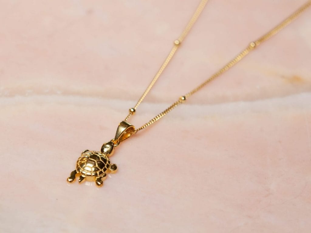 Necklace Turtle is een prachtige ketting met een hanger in de vorm van een schildpad. Deze stijlvolle ketting en hanger zijn volledig gemaakt van 925 sterling zilver met daarover drie lagen 18K goud. Het sieraad is prachtig te combineren met andere gouden kettingen in verschillende stijlen en lengtes. Gek op schildpadden? Combineer Necklace Turtle met Earstud Turtle! Necklace Turtle is ook verkrijgbaar in zilver.