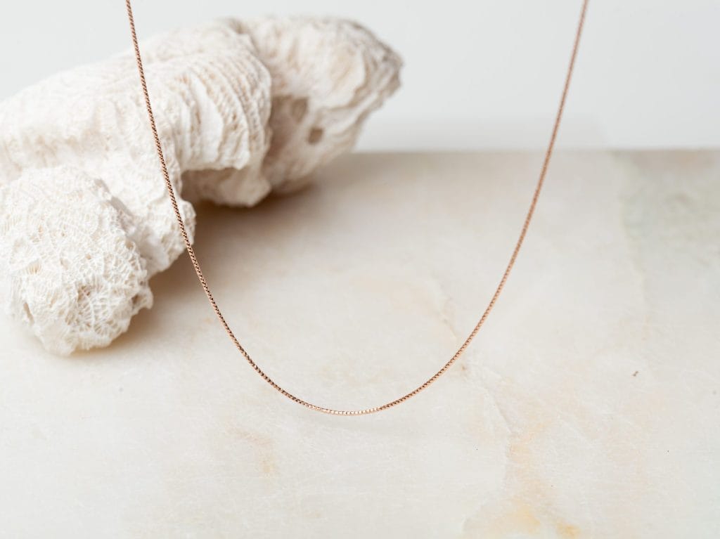 Necklace Violet is een prachtige ketting met een cobra schakel en een gebruiksvriendelijke sluiting. Het sieraad is volledig gemaakt van 925 sterling zilver met daarover drie lagen 18K roségoud. Combineer Necklace Violet met een van onze roségouden hangers en stel zo jouw perfecte sieraad samen! De ketting is verkrijgbaar in verschillende lengtes.