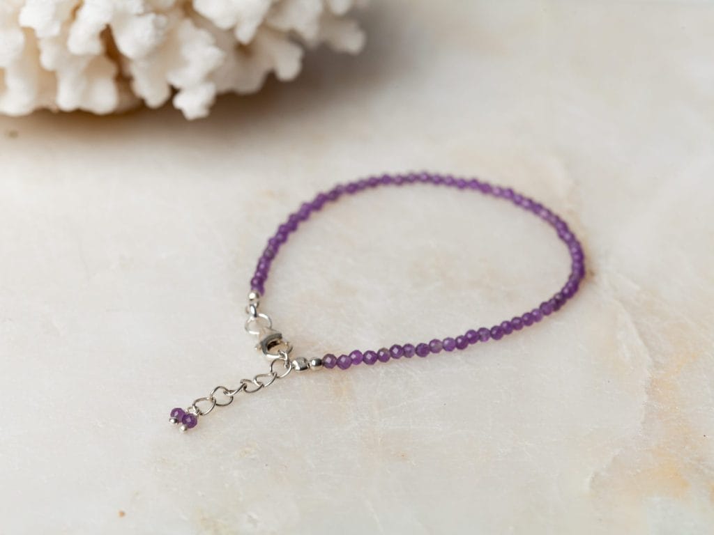 Bracelet Gemstone Amethist is een prachtige armband met een natuurlijke vorm. Deze armband is volledig gemaakt van 925 sterling zilver en Amethist edelsteentjes. Elk edelsteentje is weer anders. Dat is de charme van natuursteen. Amethist heeft een zuiverende en beschermende werking. De edelsteen bevordert het zelfinzicht en helpt je om eerlijk naar jezelf te zijn over gedrag dat schadelijk kan zijn voor jezelf. De armband is ook verkrijgbaar met Rode Granaat, Lapis Lazuli, lichte gemengde edelstenen en met donkere gemengde edelstenen.