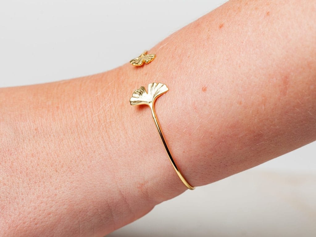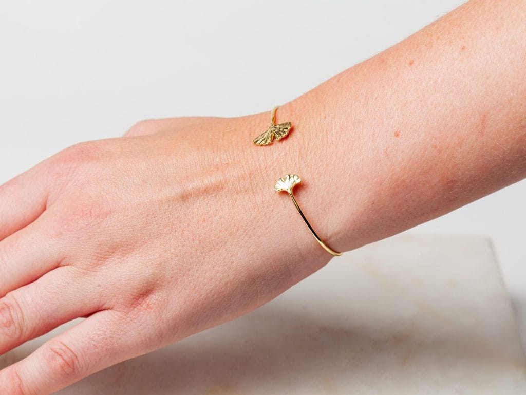 Bracelet Little Ginkgo Leaf is een prachtig sieraad met aan het uiteinde prachtige ginkgo blaadjes, een echte eye-catcher. Deze armband is volledig gemaakt van 925 sterling zilver met daarover drie lagen 18 karaat goud. Bracelet Little Ginkgo Leaf is ook verkrijgbaar in oxidized zilver. Het sieraad is prachtig te combineren met andere ginkgo sieraden, zoals Necklace Ginkgo Leaf en Earstud Ginkgo Leaf.