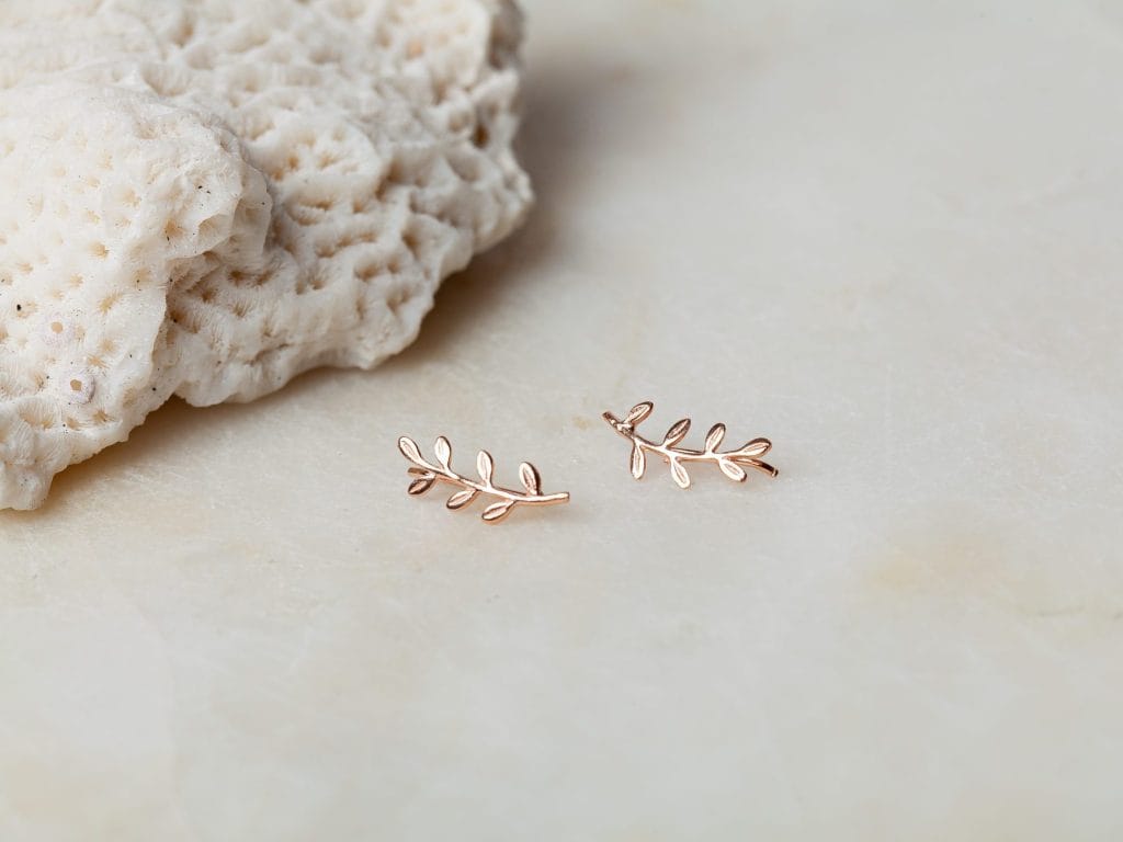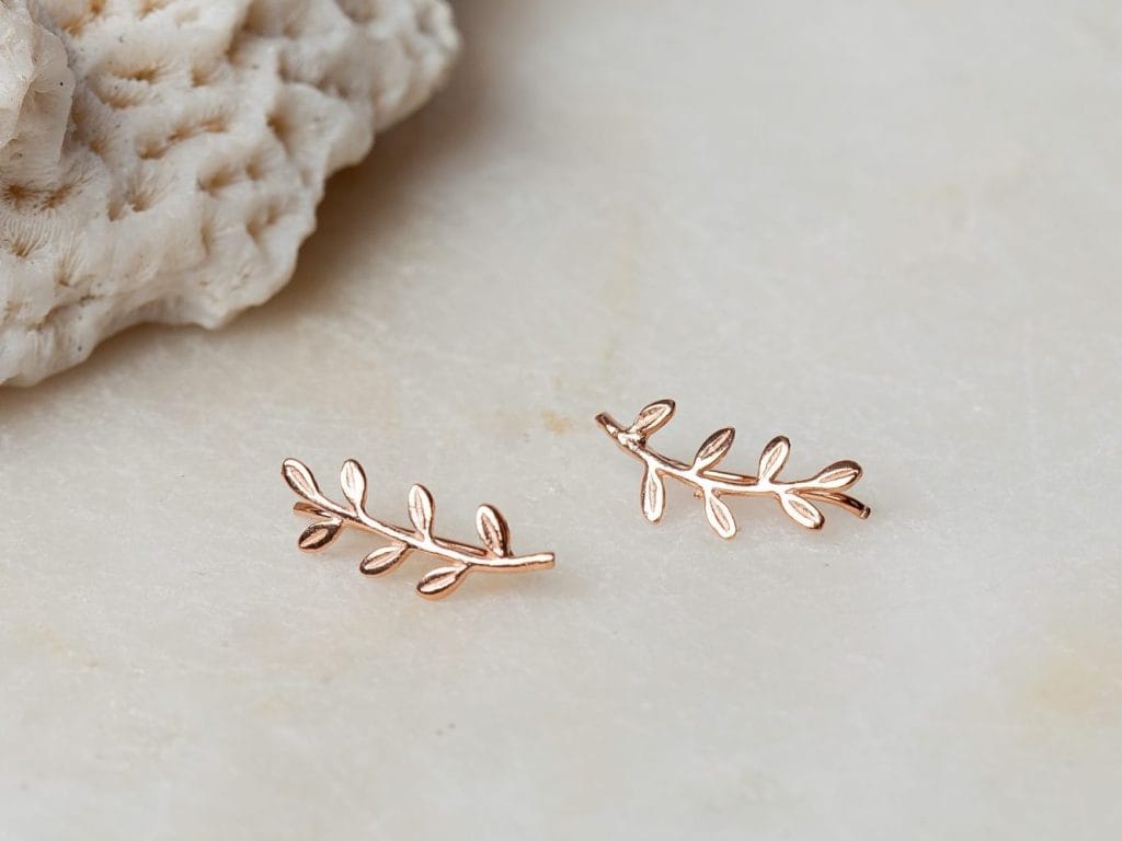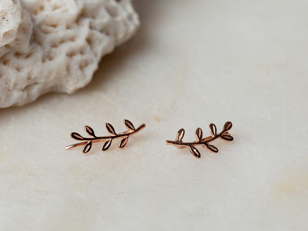 Ear Climber Twig is een elegante earclimber oorbel in de vorm van een lauriertakje. De oorbellen zijn volledig gemaakt van 925 sterling zilver met daarover drie lagen 18K roségoud. Deze verfijnde roségouden oorbellen accentueren je gezicht en vestigen de aandacht op de schoonheid ervan. Je kunt ze dragen als oorbellen, maar het blad kan ook op het oor gedragen worden als oorlijn. Ear Climber Twig is ook verkrijgbaar in zilver en 18 karaat goldplated. Al onze oorbellen worden per paar geleverd.