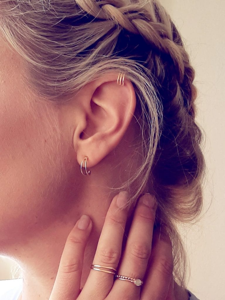 Ear Cuff Ruby is volledig gemaakt van 925 sterling zilver met daarover drie lagen 18K goud. Deze ear cuff is subtiel en elegant en ook net wat dikker van materiaal. Geen extra gaatje voor een piercing, maar heb je wel altijd een piercing willen dragen? Dan is dit sieraad de perfecte oplossing! Voor ear cuffs heb je namelijk geen gaatje nodig, wat ze extra makkelijk maakt om te dragen. Je hoeft ze alleen maar om je oorschelp te schuiven en vast te knijpen op de plek waar jij ze wilt hebben. Ear Cuff Ruby is ook verkrijgbaar in zilver en 18 karaat rose goldplated. Onze ear cuffs worden per stuk geleverd.