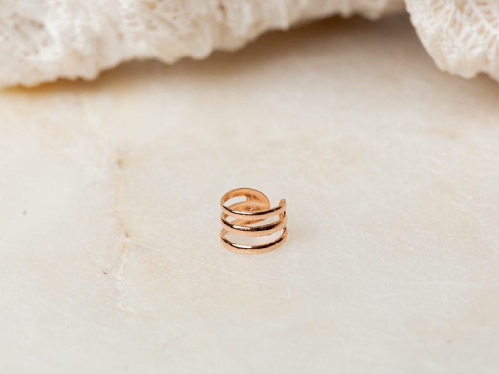 Ear Cuff Ruby is volledig gemaakt van 925 sterling zilver met daarover drie lagen 18K roségoud. Deze ear cuff is subtiel en elegant en ook net wat dikker van materiaal. Geen extra gaatje voor een piercing, maar heb je wel altijd een piercing willen dragen? Dan is dit sieraad de perfecte oplossing! Voor ear cuffs heb je namelijk geen gaatje nodig, wat ze extra makkelijk maakt om te dragen. Je hoeft ze alleen maar om je oorschelp te schuiven en vast te knijpen op de plek waar jij ze wilt hebben. Ear Cuff Ruby is ook verkrijgbaar in zilver en 18 karaat goldplated. Onze ear cuffs worden per stuk geleverd.