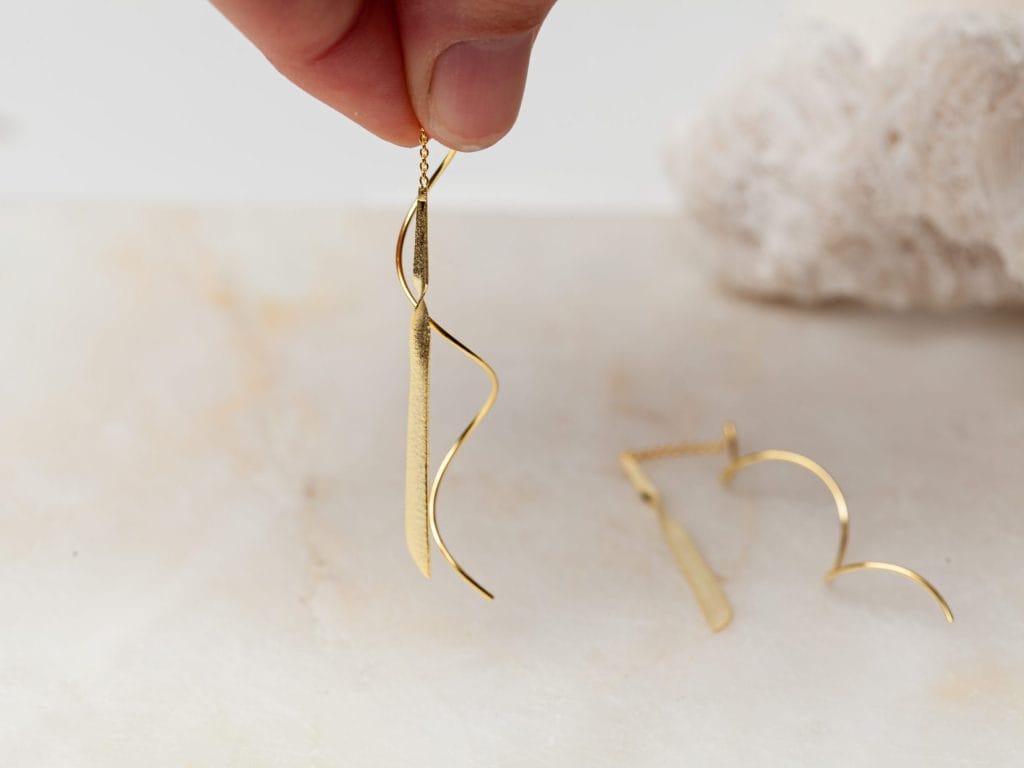 Ear Threader Faya is een elegante spiraalvormige ear threader oorbel met een subtiele twist. De oorbellen zijn volledig gemaakt van 925 sterling zilver met daarover drie lagen 18K goud, en hebben een gematteerde afwerking. Deze threader oorbellen hebben een matte gouden glans en een luchtige flair. Heb je meerdere gaatjes in je oren? Dan zijn deze gouden ear threaders mooi te combineren met een gouden oorknopje. Ear Threader Faya is ook verkrijgbaar in zilver en 18 karaat rose goldplated. Al onze oorbellen worden per paar geleverd.