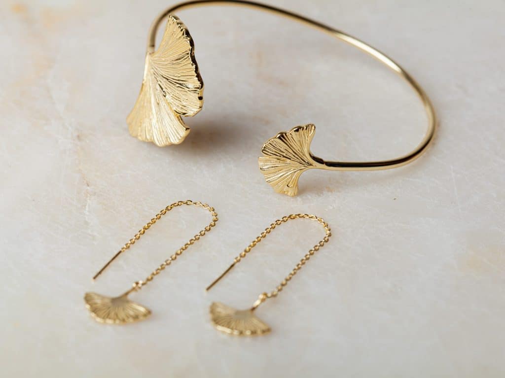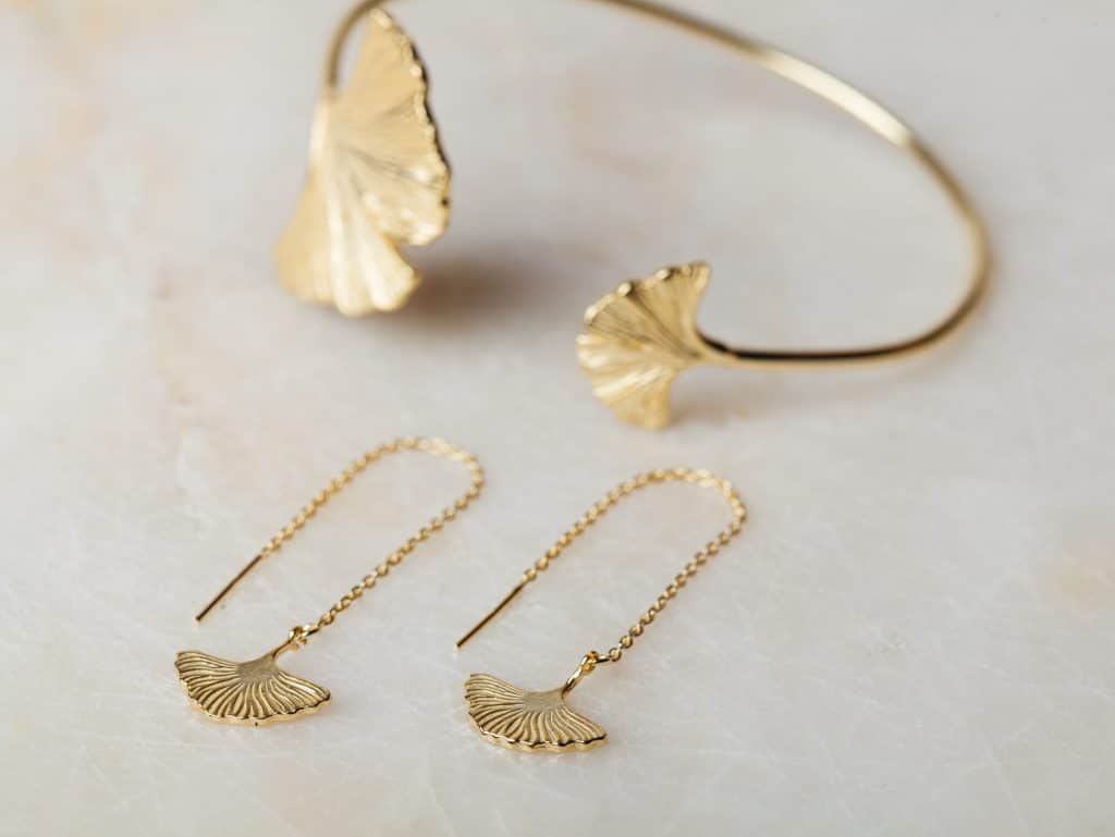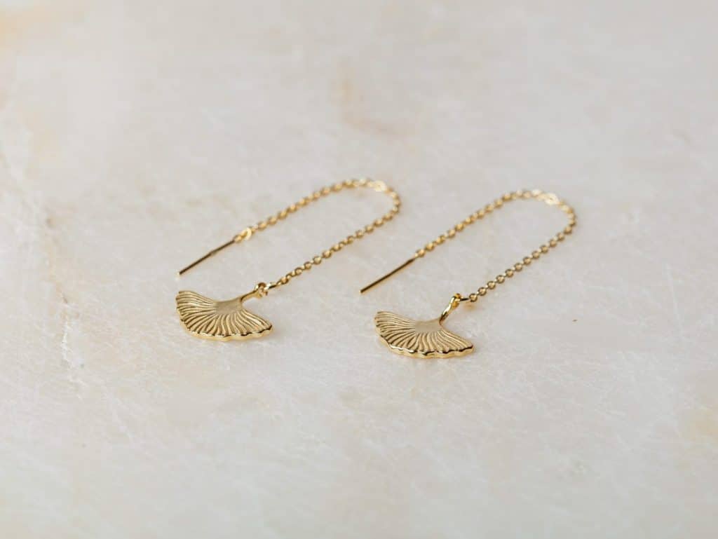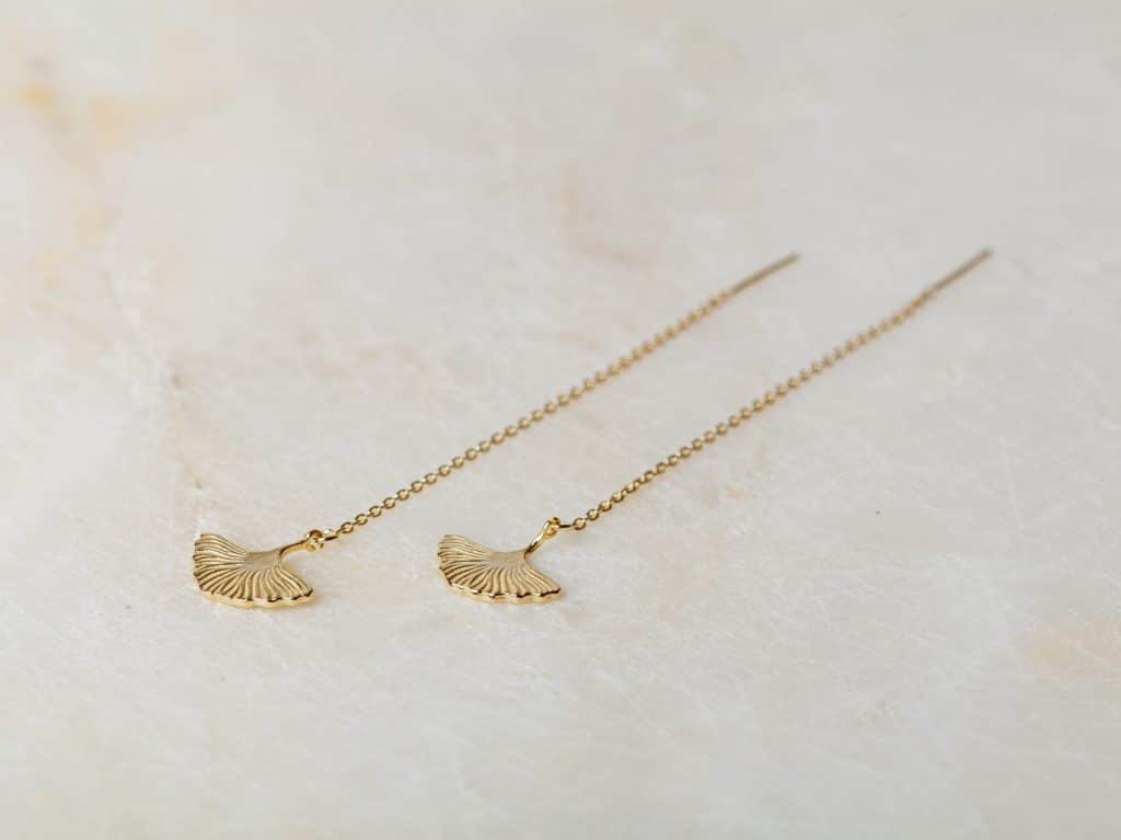 Ear Threader Ginkgo Leaf is een prachtige oorbel in de vorm van een ginkgo blad. Deze stijlvolle zilveren ear threader oorbellen geven je outfit een lichte en luchtige look, en zijn volledig gemaakt van 925 sterling zilver met daarover drie lagen 18 karaat goud. Heb je meerdere gaatjes in je oren? Dan zijn deze gouden ear threaders mooi te combineren met een gouden oorknopje of oorringetje. Ear Threader Ginkgo Leaf is ook verkrijgbaar in zilver. Al onze oorbellen worden per paar geleverd.