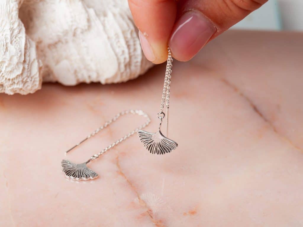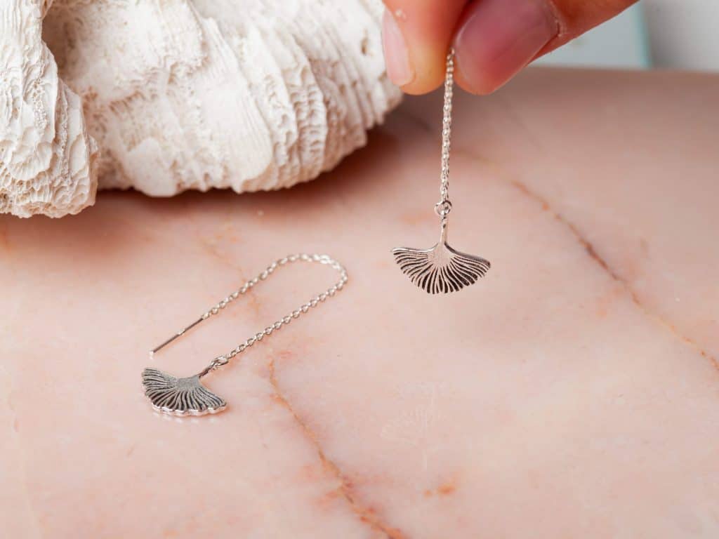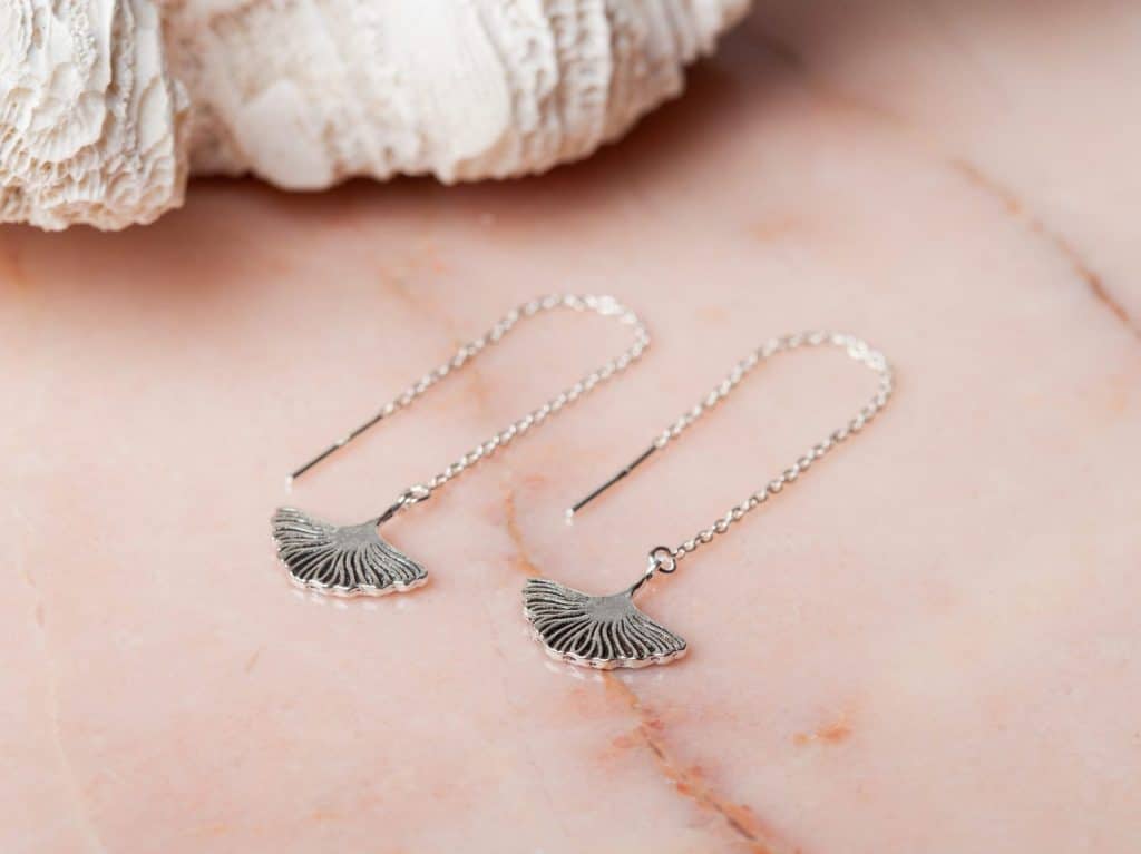 Ear Threader Ginkgo Leaf is een prachtige oorbel in de vorm van een ginko blad. Deze stijlvolle zilveren ear threader oorbellen geven je outfit een lichte en luchtige look, en zijn volledig gemaakt van 925 sterling zilver. Heb je meerdere gaatjes in je oren? Dan zijn deze zilveren ear threaders mooi te combineren met een zilveren oorknopje of oorringetje. Ear Threader Ginkgo Leaf is ook verkrijgbaar in 18 karaat goldplated. Al onze oorbellen worden per paar geleverd.