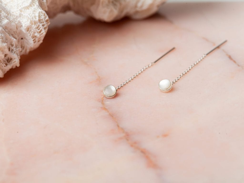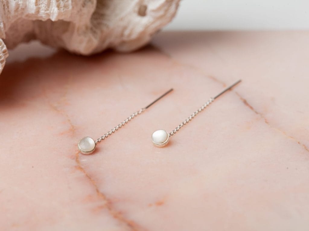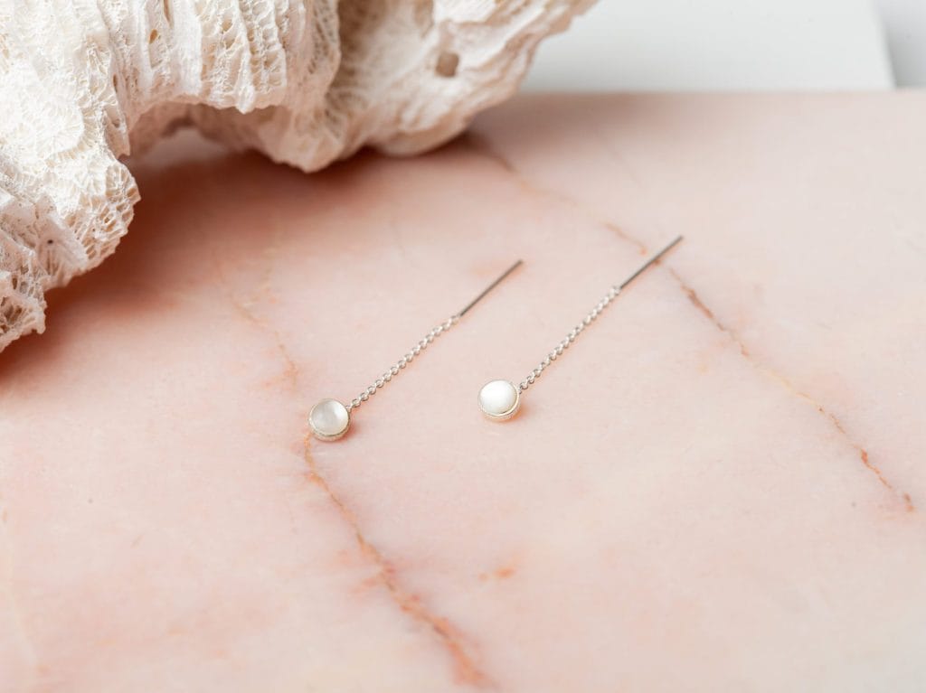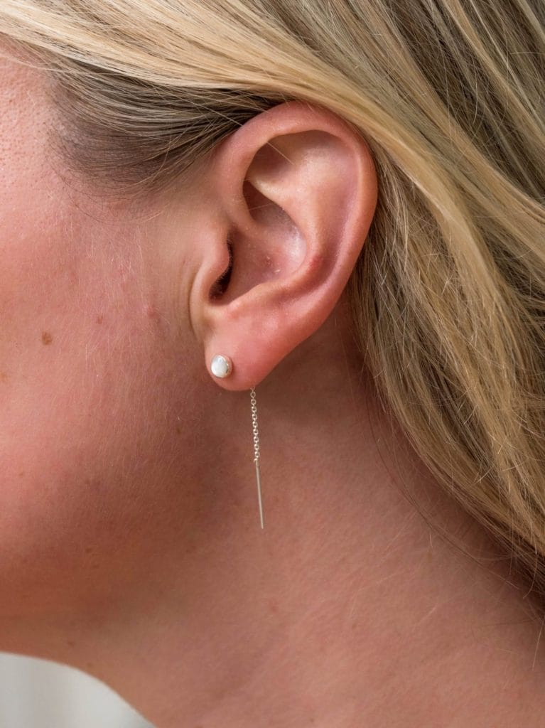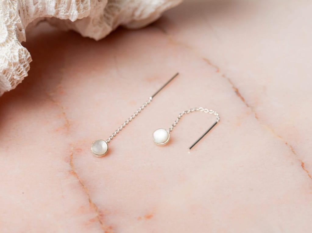Ear Threader Little Stone is een prachtige ear threader met een minimalistisch design. Deze elegante oorbellen zijn volledig gemaakt van 925 sterling zilver, en zijn ingezet met parelmoer. Heb je meerdere gaatjes in je oren? Dan zijn deze zilveren ear threaders mooi te combineren met een zilveren oorknopje of oorringetje. Al onze oorbellen worden per paar geleverd.