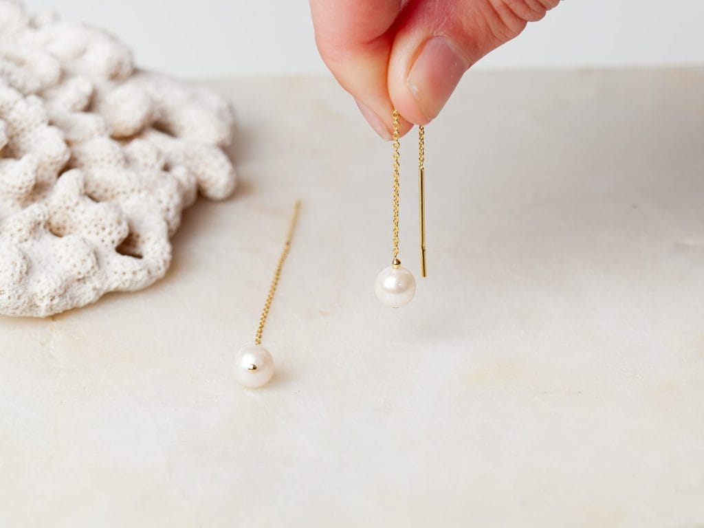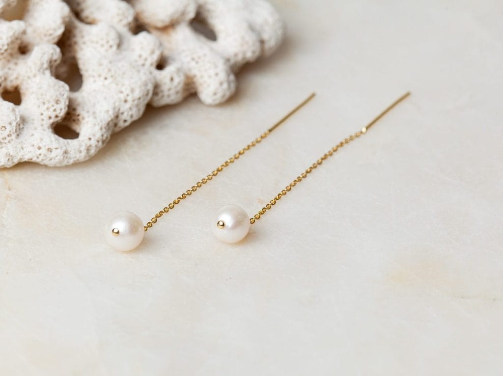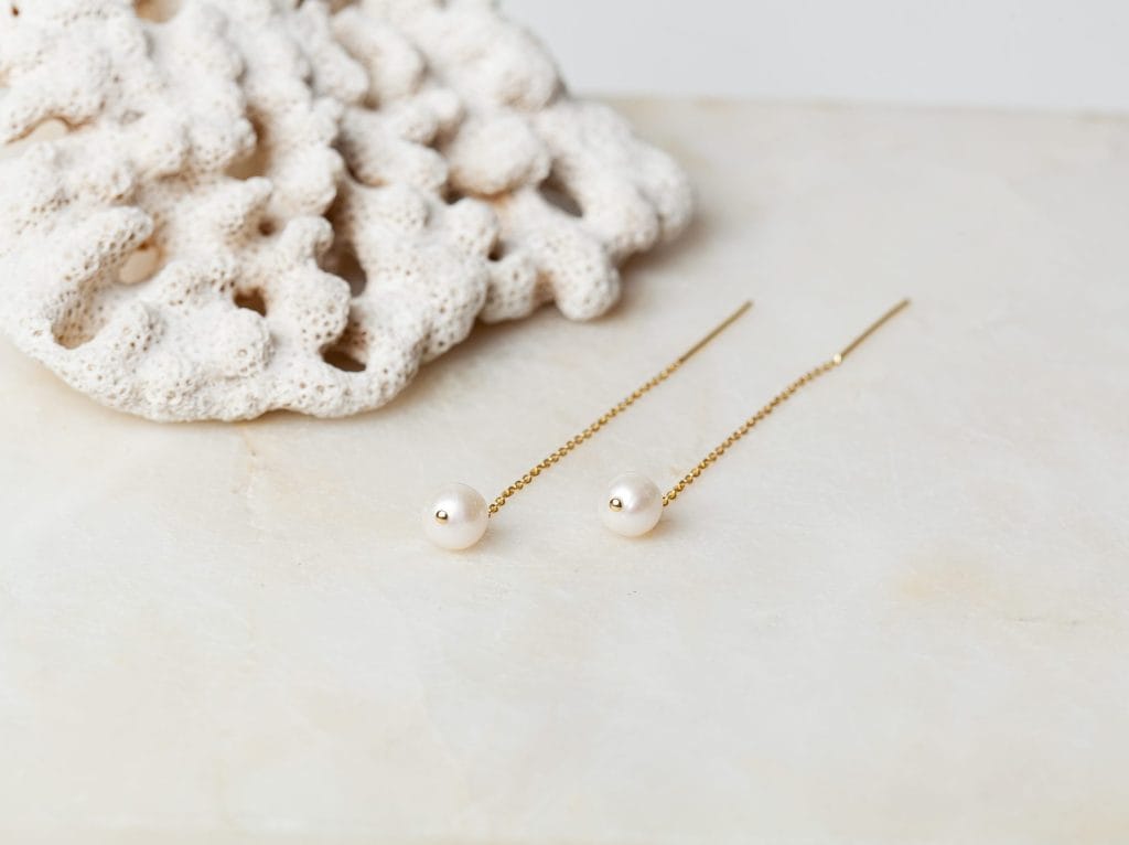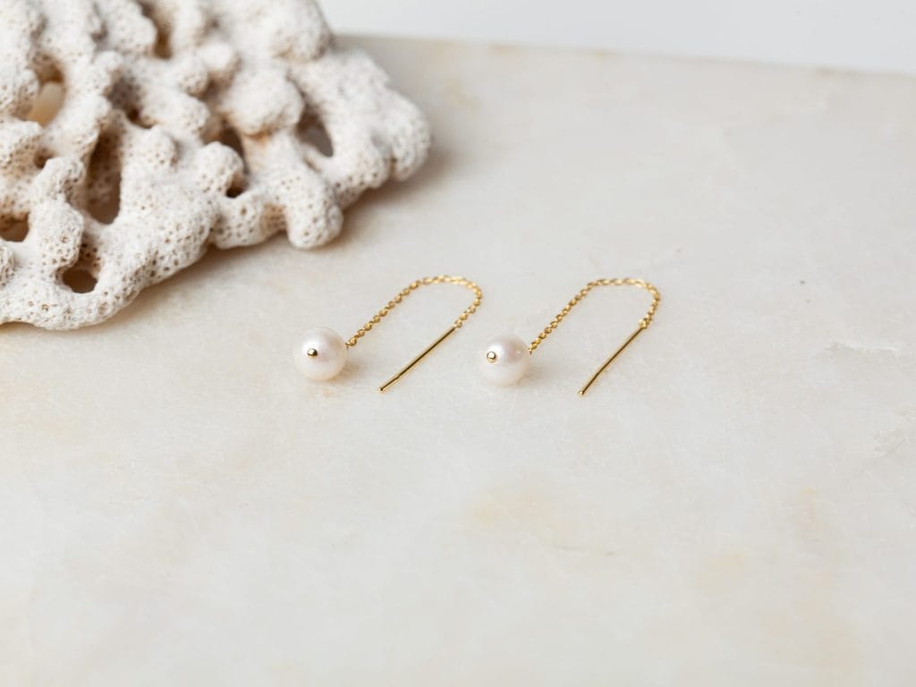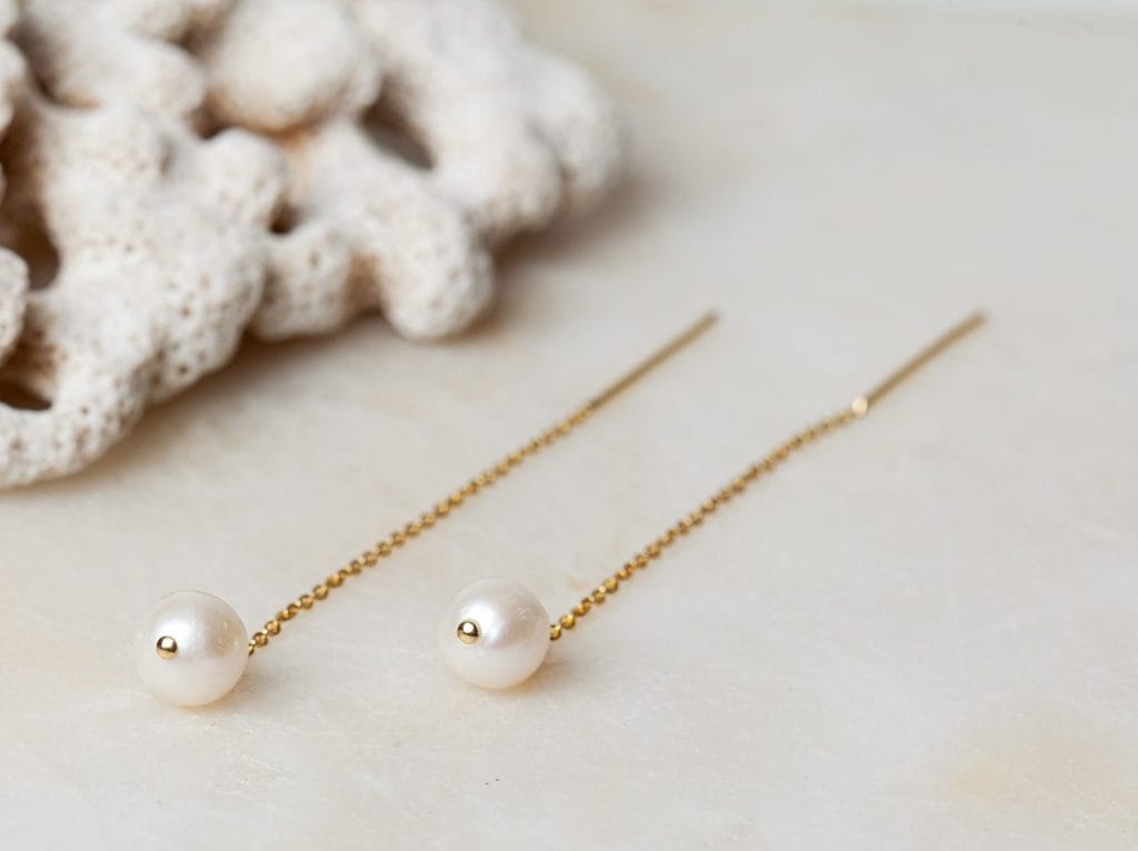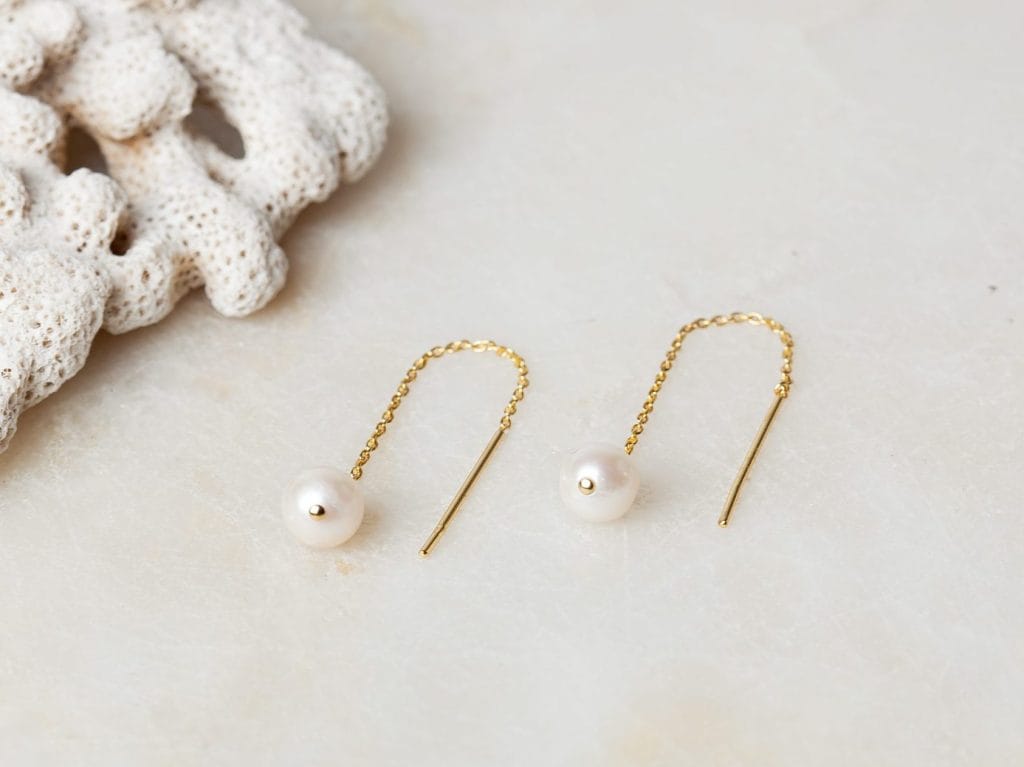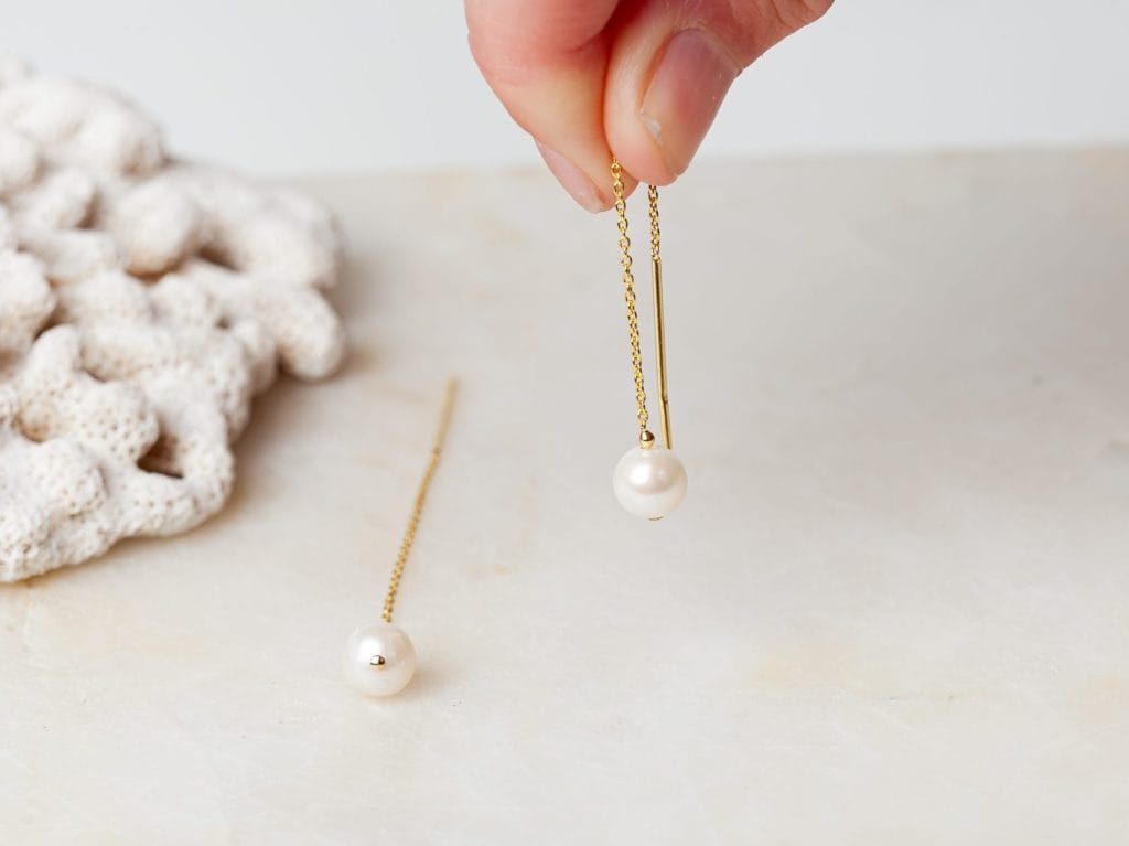Ear Threader Pearl Long is een ear threader oorbel met een zoetwaterparel. De oorbellen zijn volledig gemaakt van 925 sterling zilver met daarover drie lagen 18K goud, en aan het uiteinde bevindt zich een zoetwaterparel van ca. 8 mm groot. Heb je meerdere gaatjes in je oren? Dan zijn deze gouden ear threaders mooi te combineren met een gouden oorknopje of oorringetje. Ear Threader Pearl Long is ook verkrijgbaar in zilver. Al onze oorbellen worden per paar geleverd.