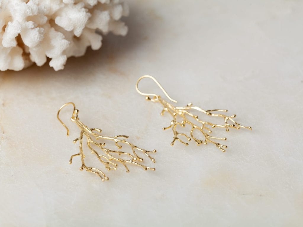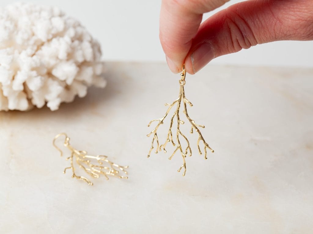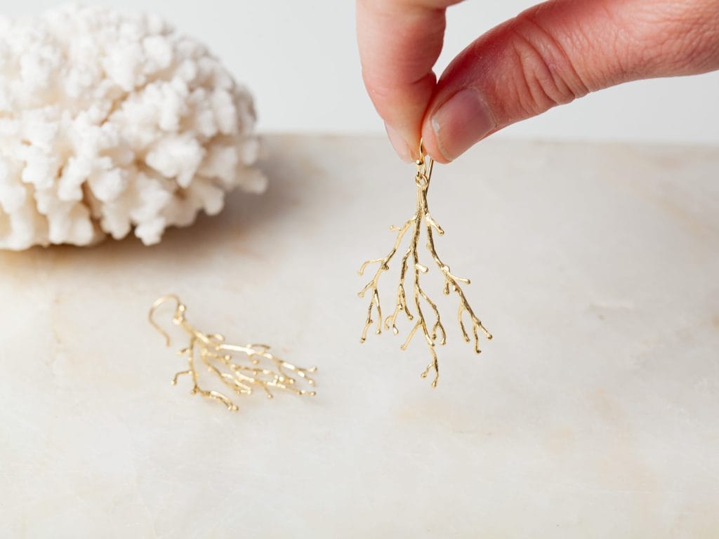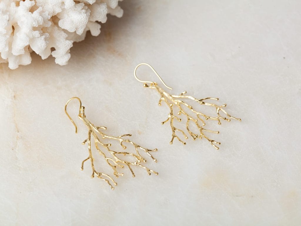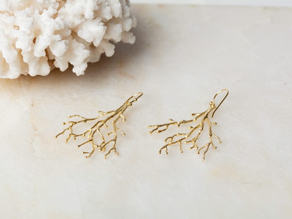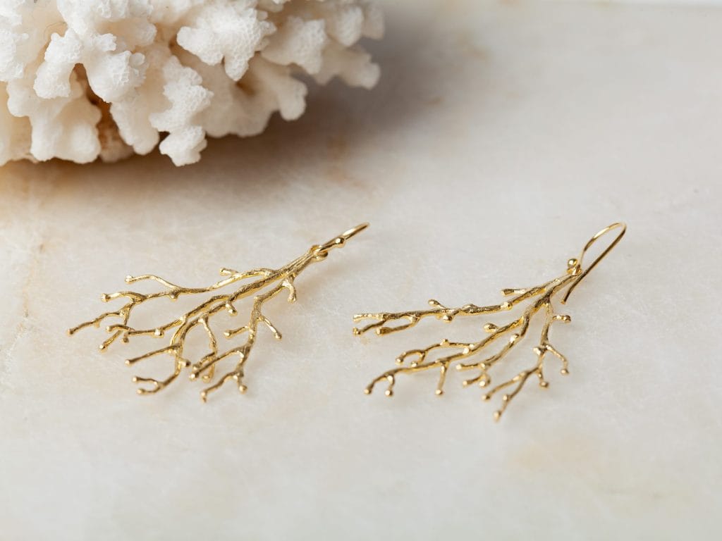 Earring Cheyenne is als een prachtig kunstwerk voor het oor. Het laat een gebeeldhouwd koraalstuk zien. Deze artistieke oorbellen zijn volledig met de hand gemaakt van 925 sterling zilver met daarover drie lagen 18K goud, en hebben een gematteerde afwerking. Heb je meerdere gaatjes in je oren? Dan zijn deze gouden oorbellen prachtig te combineren met een verfijnd gouden oorknopje. Earring Cheyenne is ook verkrijgbaar in zilver. Al onze oorbellen worden per paar geleverd.