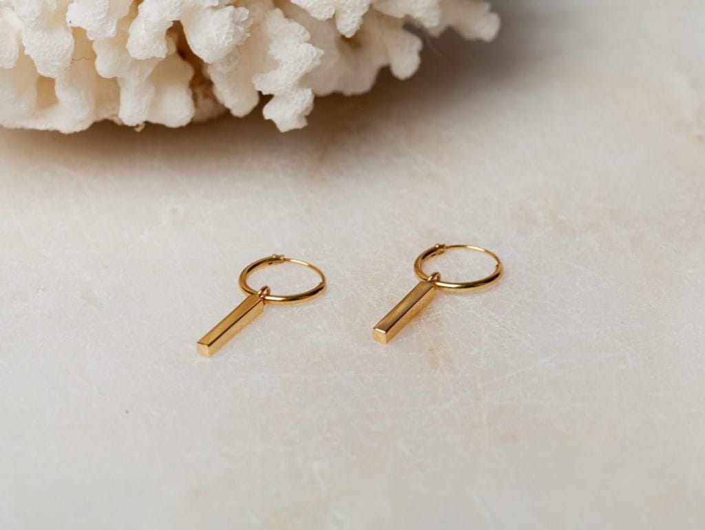 Hoop Earrings Lynn is een prachtig sieraad dat je goed kunt combineren met andere oorringetjes! Deze schattige oorring met staafjes in minimalistisch design zijn volledig gemaakt van 925 sterling zilver met daarover drie lagen 18K goud. Ook in het tweede gaatje zullen deze gouden oorbellen zeker niet misstaan. De oorbellen zijn ook verkrijgbaar in zilver. Al onze oorbellen worden per paar geleverd.