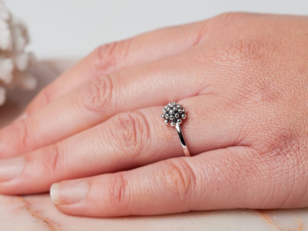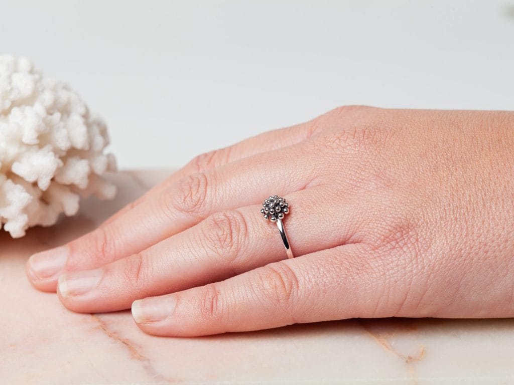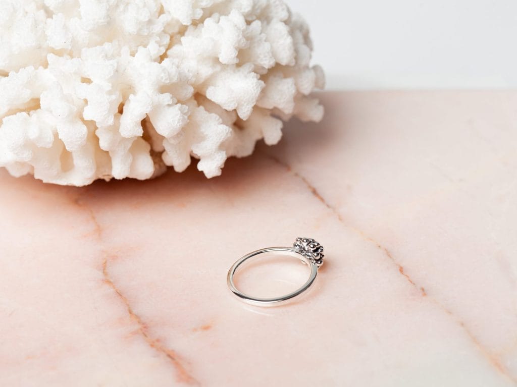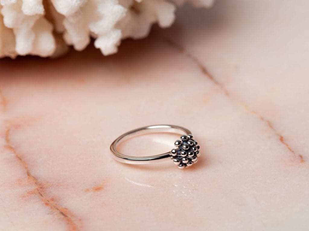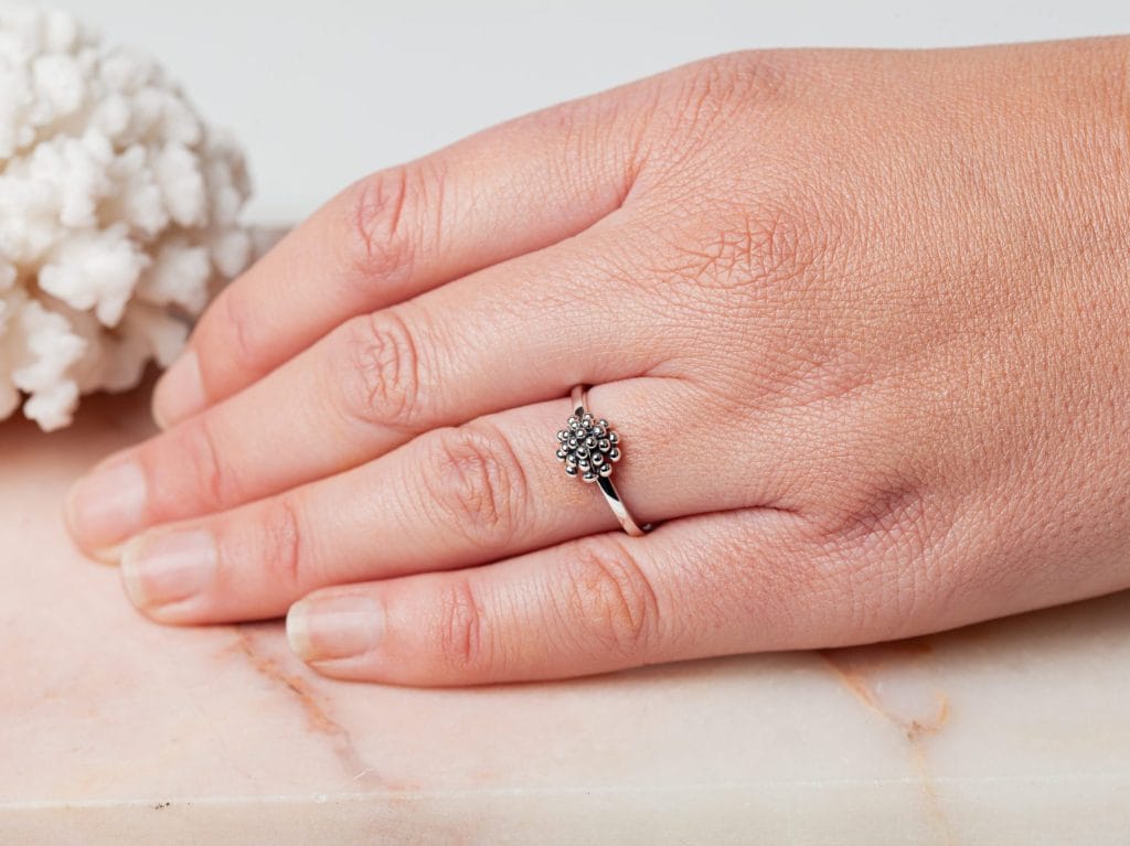 Ring Corail heeft een prachtig koepelvormige versiering die lijkt op een Zeeuws knoopje of een koraalstukje. De ring is volledig gemaakt van 925 sterling zilver. Deze prachtige ring is verkrijgbaar in de meest voorkomende ringmaten voor dames en is goed te combineren met andere ringen in verschillende stijlen. Denk bijvoorbeeld aan een combinatie met minimalistische zilveren ringen, of juist met opvallende statement ringen.