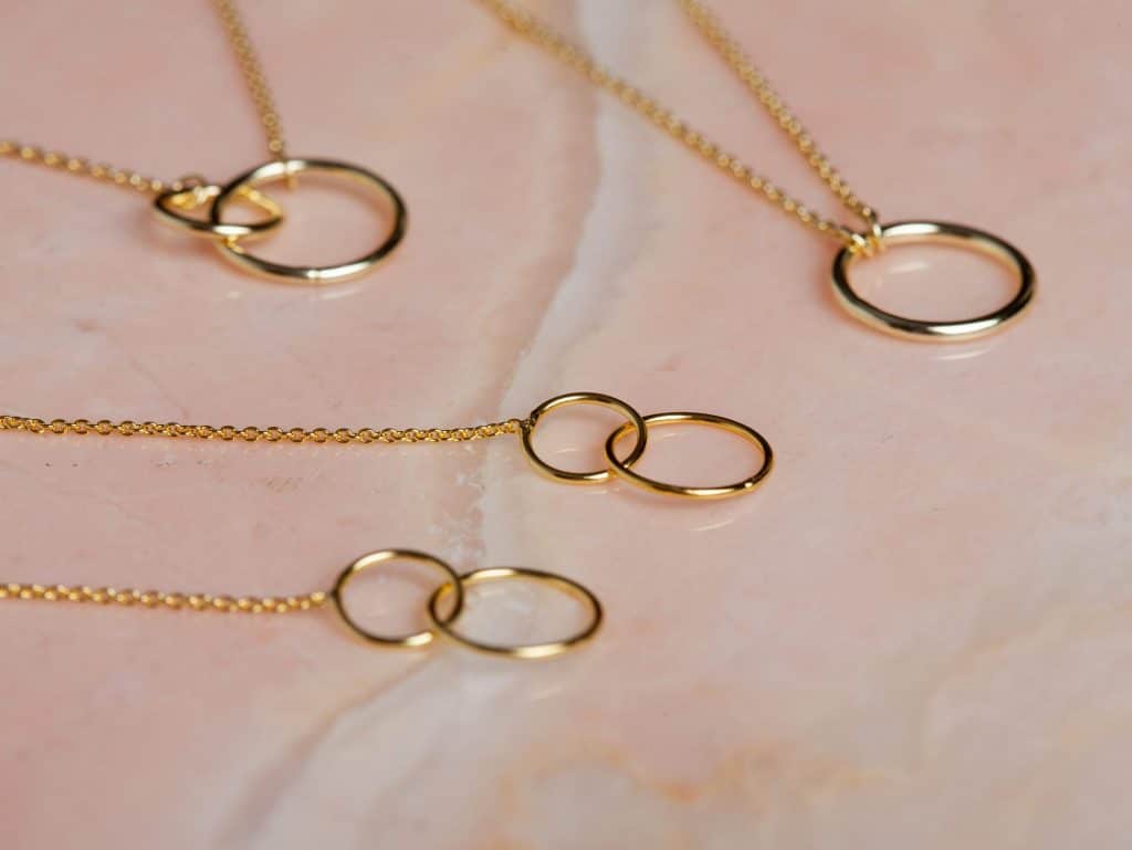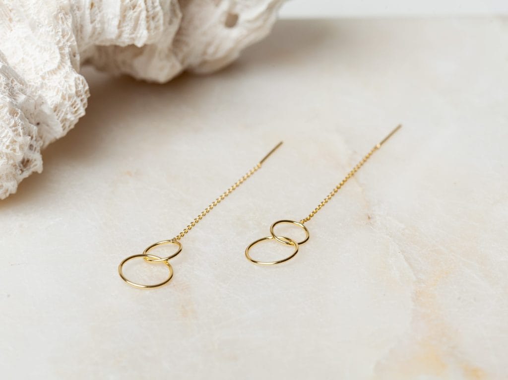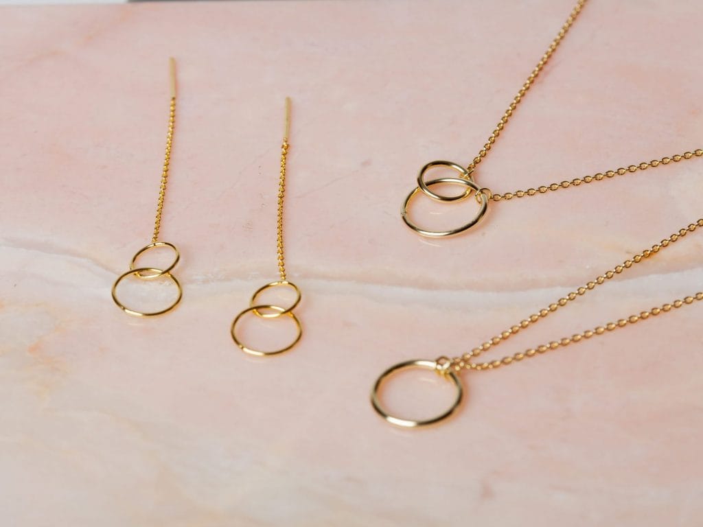 Sieradenset Circles bestaat uit een elegante ketting, armband en ear threader oorbellen met speelse cirkels. De sieraden hebben een minimalistische en chique uitstraling en zijn volledig gemaakt van 925 sterling zilver met daarover drie lagen 18 karaat goud. De ketting en armband zijn in lengte verstelbaar. De ketting, armband en oorbellen zijn ook apart verkrijgbaar.